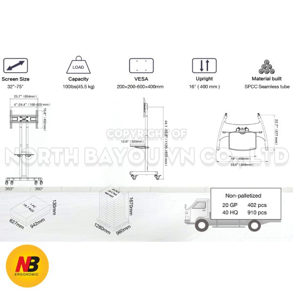KHUNGTREOTV.COM đã và đang phân phối. Giá treo tivi di động NB AVA1500-60-1P các khu vực trên toàn quốc gồm: